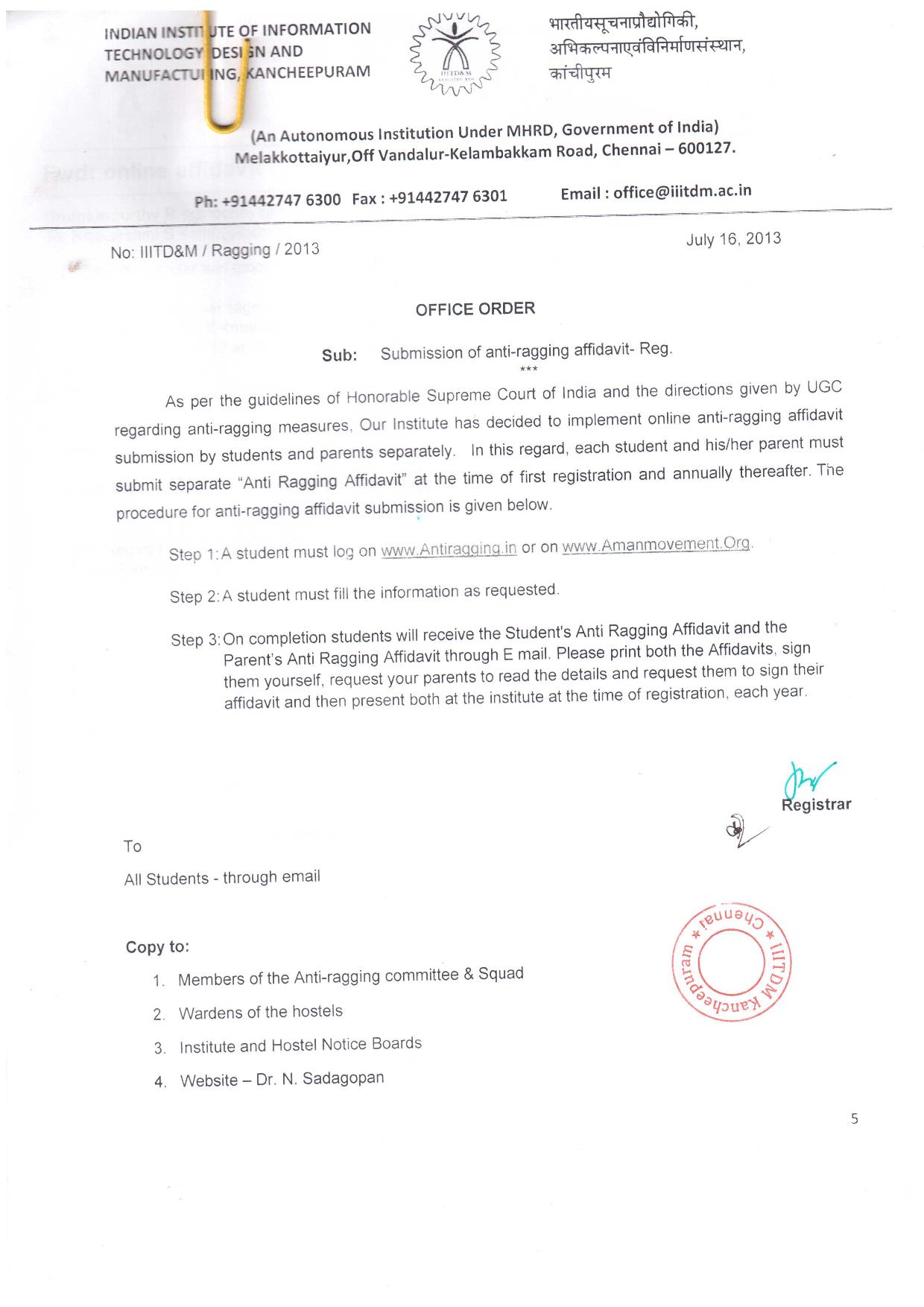 Information for First Year - B.Tech / Dual Degree / M.Des / Ph.D