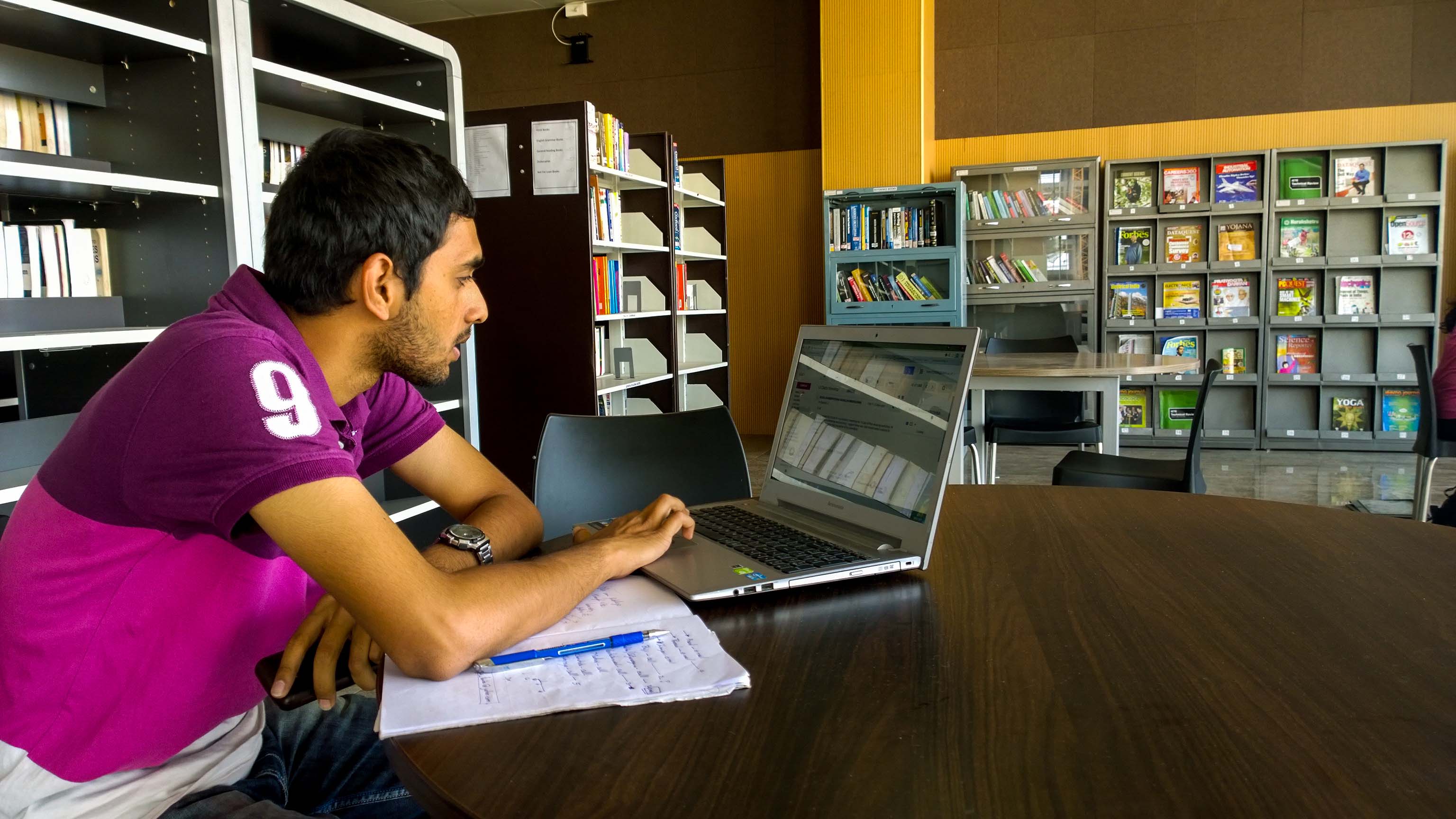 Library plays an important role to provide quality information and services to the members and committed to support the Institute’s mission. The Library uses an automated (Library and Information Management) software KOHA with Integrated RFID Technology. All the registered users can access the Institute library anywhere within the campus through LAN/WiFi.