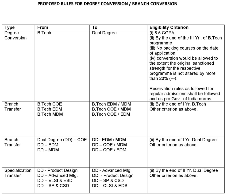 Dual Degree|Branch Change Rules